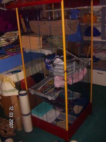 dieser käfig wird eigentlich nur fürs frssen und den toilettengang benutzt, AB und zu auch mal zum schlafen