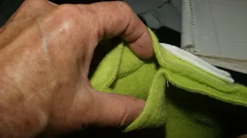 Die Ecken knapp abschneiden, die Matratze wenden und die Ecken mit der Schere fein nach außen drücken.