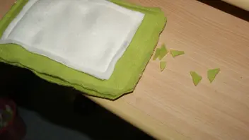 Die Einlagen auf eine linke Seite eines Außenteils legen und festnähen.