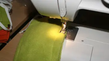 Am Schluss die Wendeöffnung verschließen. Besonders schön wird es, wenn ihr dabei ganz herum näht. Mit Nähmaschinen, die sich mit den jetzt ja mindestens 4 Fleecelagen schwer tun, reicht es auch nur die Wendeöffnung zuzunähen.